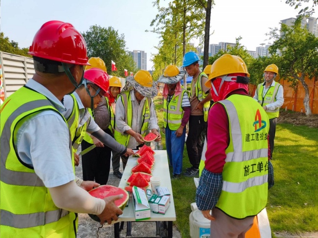 面對持續的高溫“烤”驗,市政一公司各項目加大防暑工作力度,采取一系列有效措施,破解高溫施工瓶頸,確保夏季作業規范安全、防護到位。