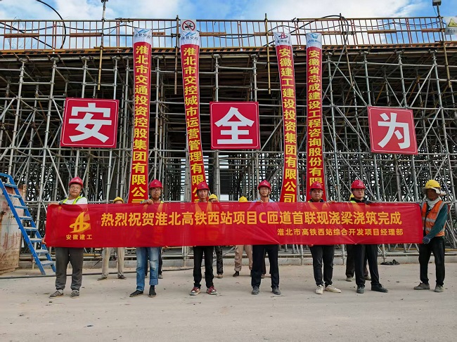 7月22日,隨著最后一方混凝土精準入模、振搗密實,由建工建投集團承建的淮北市高鐵西站綜合開發項目圓滿完成C匝道首聯現澆梁澆筑工作。