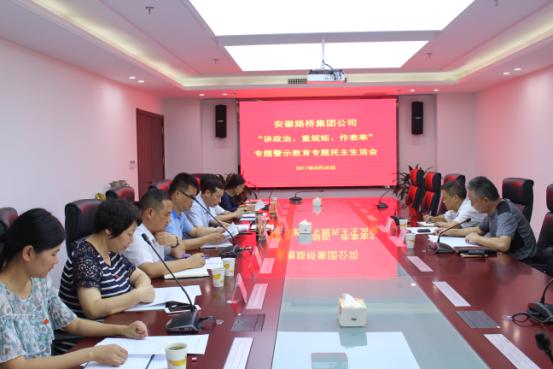按照集團黨委《關于在推進“兩學一做”學習教育常態化制度化中開展“講政治、重規矩、作表率”專題教育的實施方案》部署要求,安徽路橋集團于8月28日召開公司領導班子“講政治、重規矩、作表率”專題警示教育專題民主生活會,黨委書記、董事長、總經理盛明宏主持會議,公司領導班子全體成員參加會議。建工集團紀委書記宋志華、紀委副書記龔志酬到會指導。