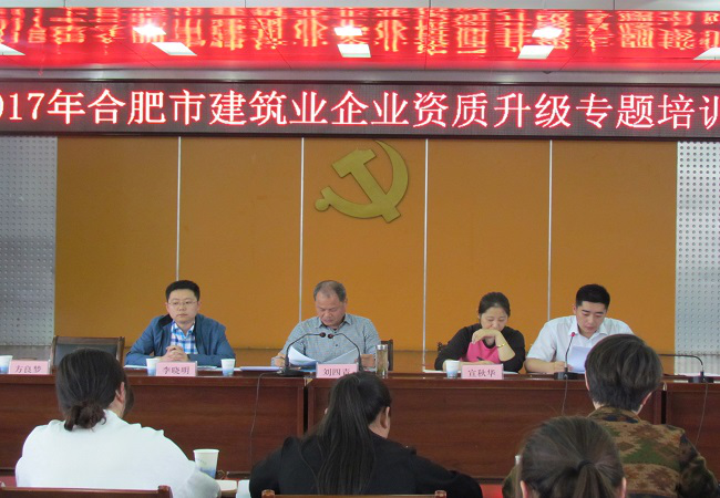 4月19日下午,李曉明同志受合肥市城鄉建委邀請,為該市近期擬開展資質升級的百余家建筑業企業作專項輔導培訓。建委建管處副處長劉四青、行政審批處副處長宣秋華等,四縣一市住建局分管領導及相關業務科室負責同志,全市有關建筑業企業資質管理工作負責同志參加培訓會。