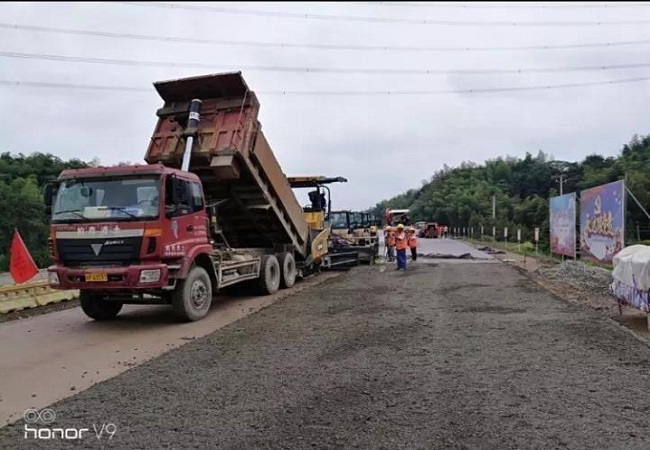 貍宣路面項目節假日進行水穩及附屬工程施工