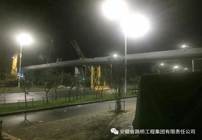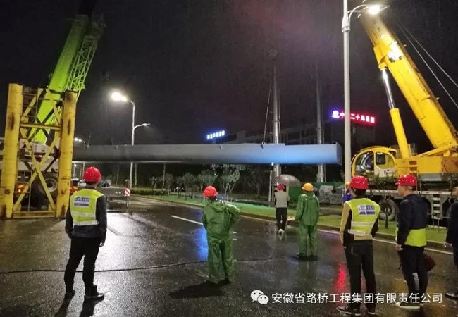 錦繡大道項目人行天橋鋼箱梁正式開始安裝